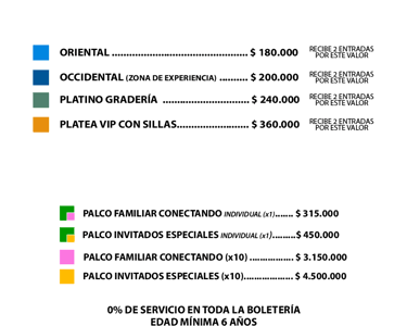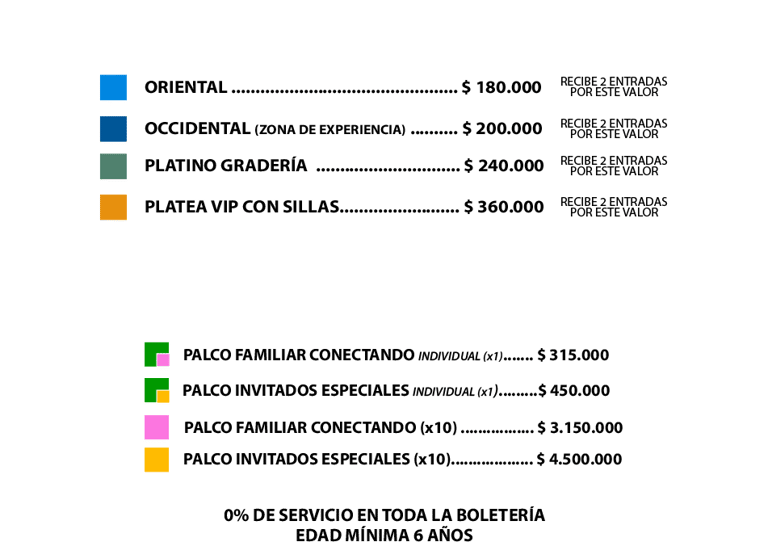 En JV Entretenimiento S.A.S., nos encargamos de la producción y venta directa de las entradas para nuestros eventos. Esto significa que los valores de las boletas son finales, y no se aplicarán cargos adicionales por servicios, IVA, impuestos adicionales ni por el envío de las boletas. El precio que ves es el precio total.